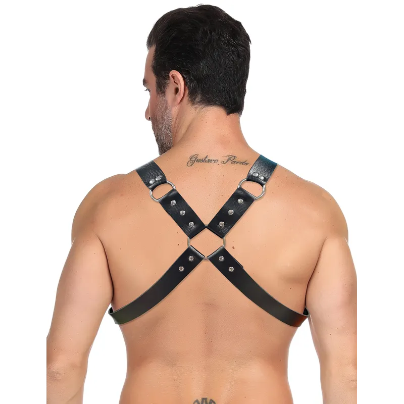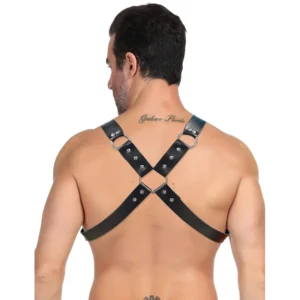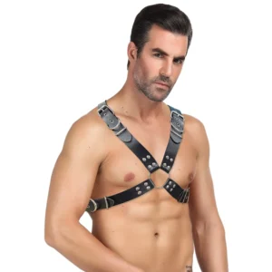 Intro: Domina la escena y libera tu lado más atrevido con este arnés de pecho estilo punk. Diseñado meticulosamente para el hombre que busca explorar nuevas fronteras de la moda fetiche y la sensualidad, esta pieza combina la elegancia del cuero negro con la fuerza de los detalles metálicos, creando un look imponente que no pasará desapercibido en la intimidad o en eventos temáticos.