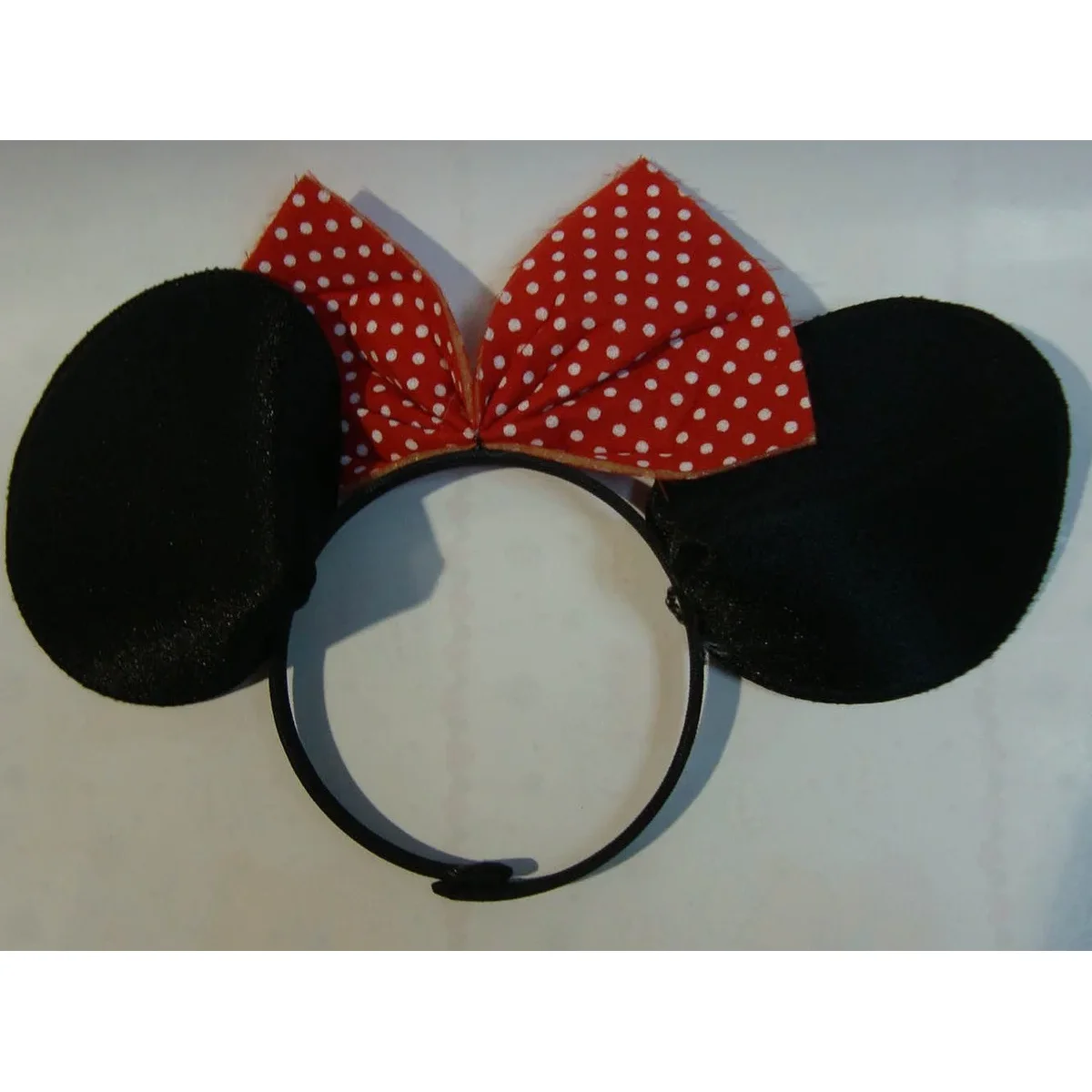 Dale un toque divertido y encantador a tu look con esta diadema con orejas negras y lazo rojo de lunares, un accesorio clásico ideal para fiestas temáticas, disfraces, eventos especiales o juegos de rol.