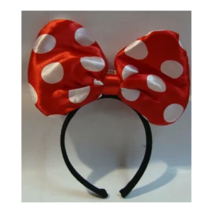 Diadema de orejas con lazo rojo de lunares: divertida y coqueta, perfecta para disfraces y fiestas temáticas.