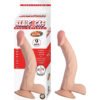 Su estructura presenta un eje recto con cabeza pronunciada y textura venada, que imita fielmente la forma y el tacto de un pene real. Los testículos moldeados aportan un acabado auténtico y un agarre más cómodo durante el uso.
