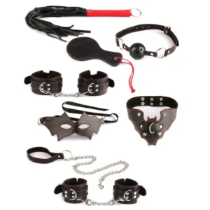 Intro: Eleva la intensidad de tus encuentros y lleva tus fantasías al siguiente nivel con el toque oscuro y elegante del Set Fetiche Mania. Este kit ha sido diseñado para quienes buscan explorar el juego de roles con una estética gótica impactante, combinando el negro profundo con costuras rojas de contraste para una experiencia visualmente seductora y físicamente emocionante.