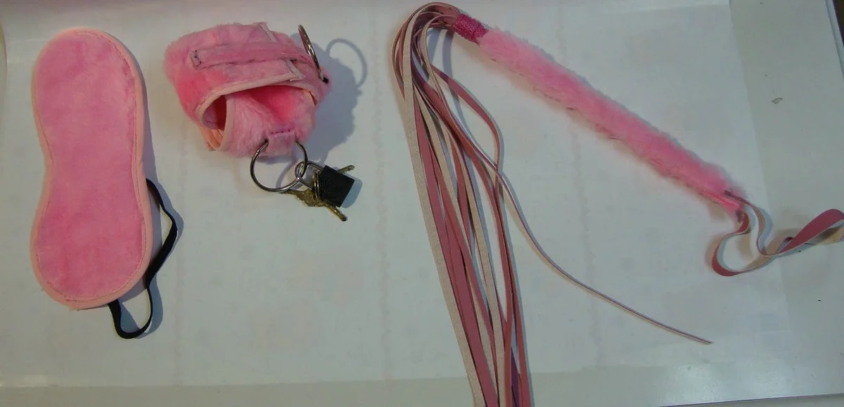 El set incluye: latigo, esposas, antifaz. tenemos de color rojo, negro y rosado.